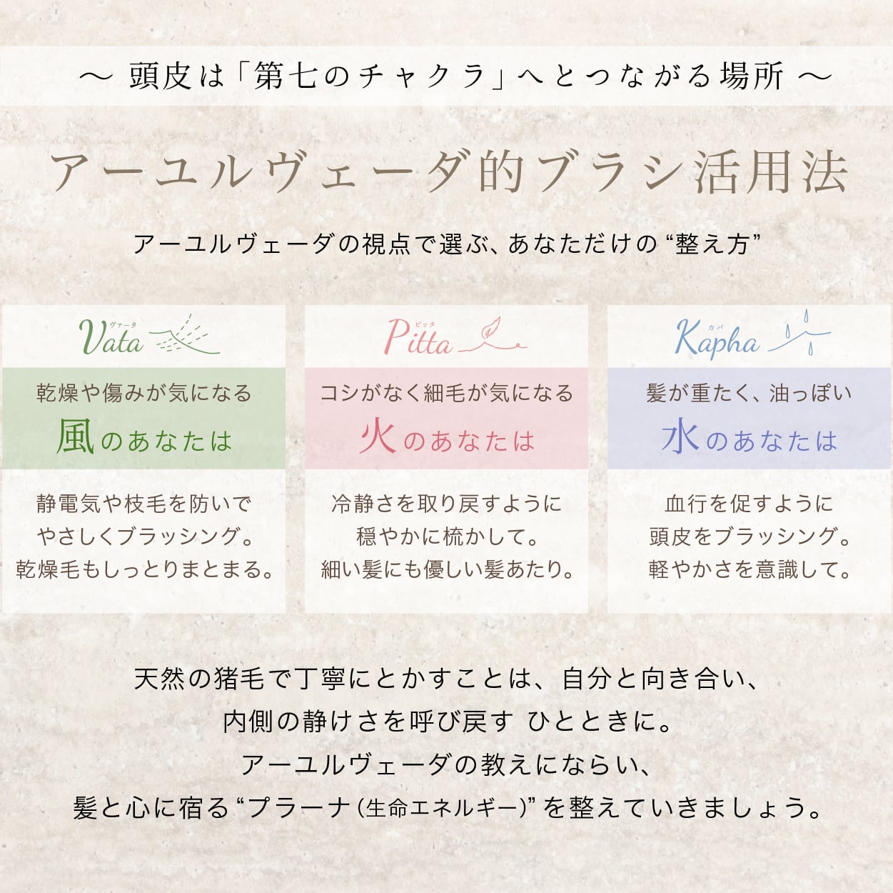 使うほどにブラシが髪になじんでいくのも、天然素材だからこその愉しみ。