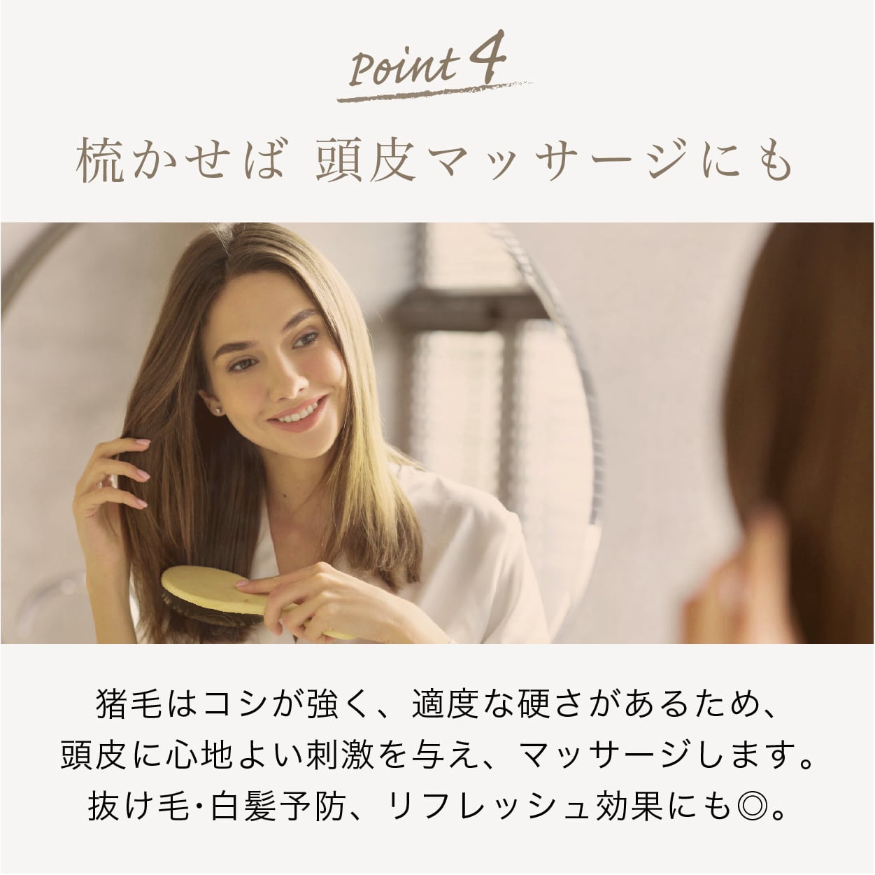 ブラッシングするたび、猪毛が頭皮をやさしく刺激。