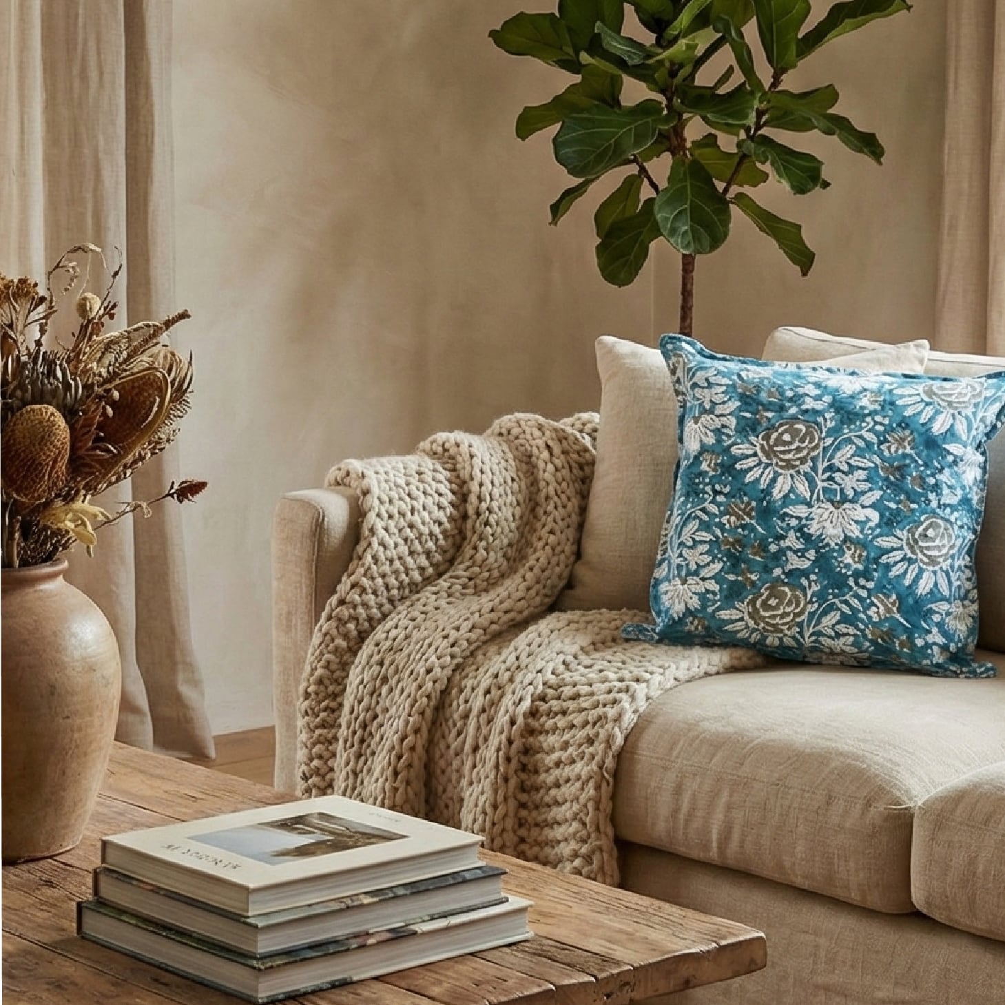 インドの手仕事が息づく、木版染めのボタニカル柄