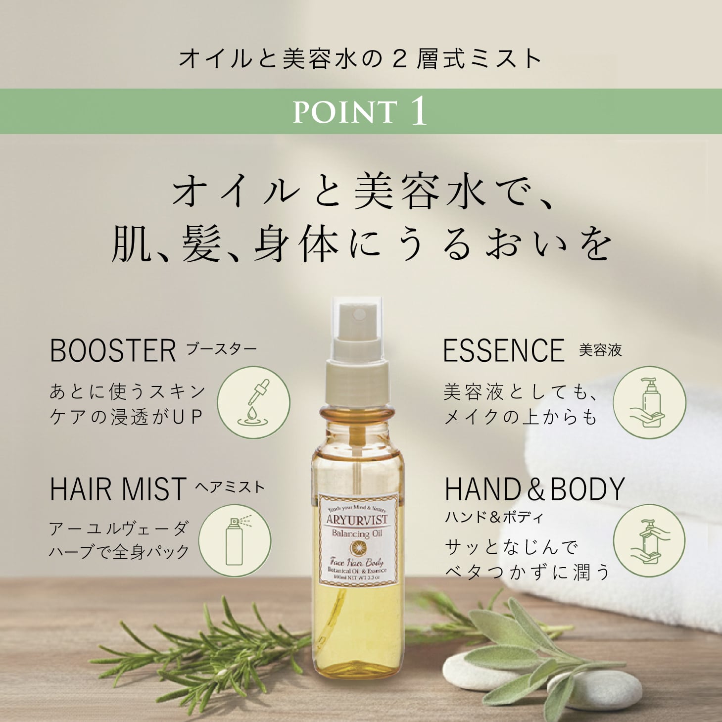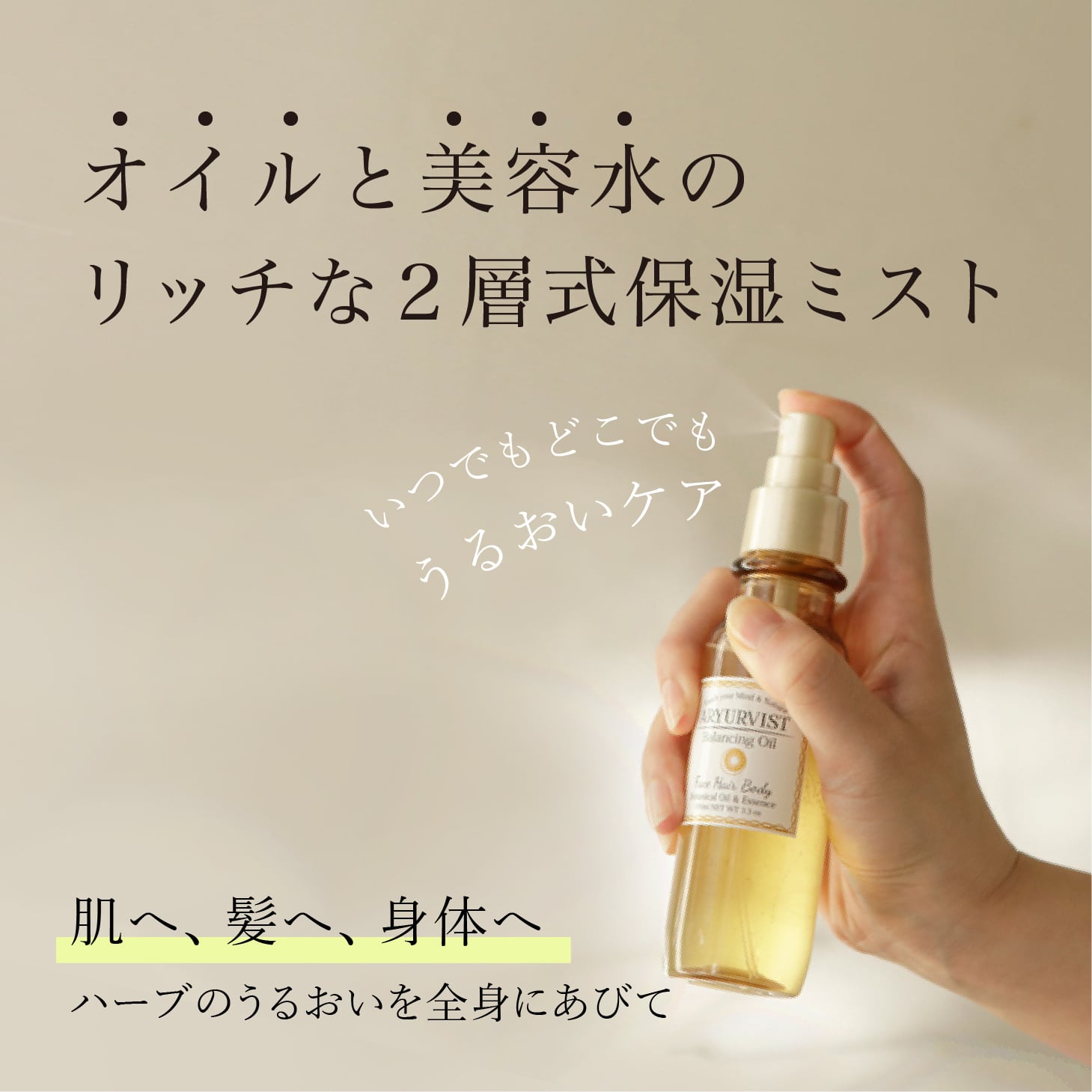 アーユルヴェーダ・ハーブのオイルと美容水がひとつになった、リッチな二層式ミスト。